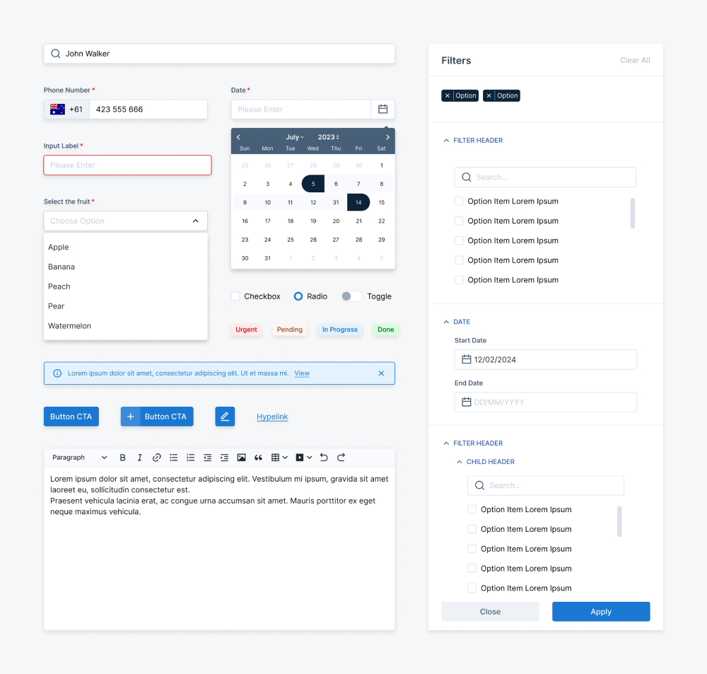 I aimed to create a scalable, reusable, and accessible design library. Beyond ensuring UI consistency across projects, keened to enhance collaboration among designers and streamline the handoff to developers.